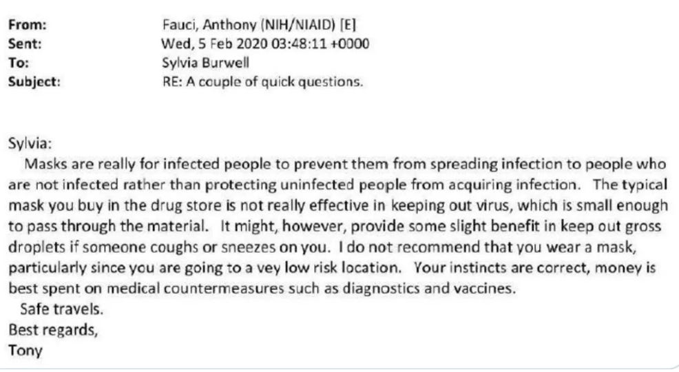 Even Tony Fauci performed a mask-science flip flop, first arguing that masks didn’t work, before pivoting into full-on mask activist.