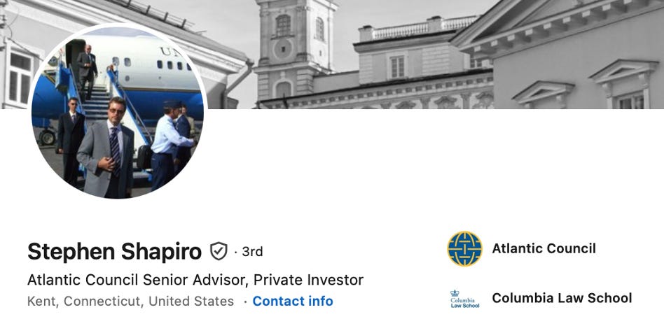 “His areas of interest include the proper organization of USG structures and processes to most effectively assert US power and influence abroad and to ensure domestic security at home,” Shapiro writes on his LinkedIn biography. “Classic geopolitical strategic relationships, particularly when filtered through the lens of modern economic and technological developments; NATO and hybrid conflict.”
