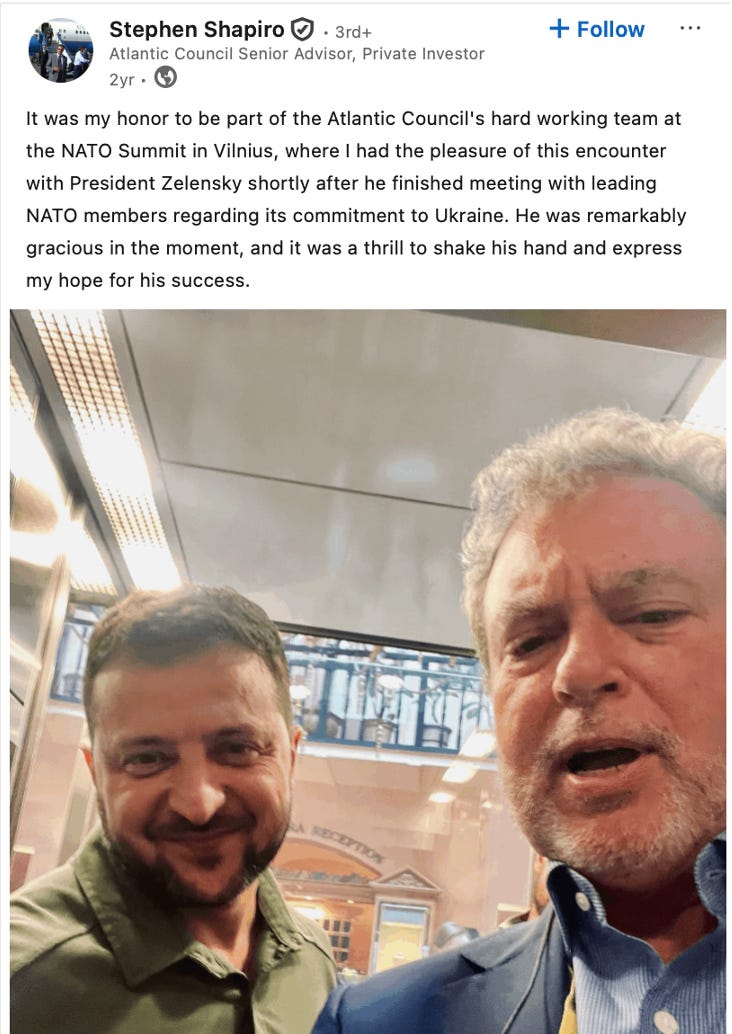 Nor does anything in Shapiro’s biography at The Atlantic Council point to a scintilla of expertise in science or medicine. “Stephen Shapiro is a senior advisor at the Atlantic Council’s Scowcroft Center for Strategy and Security and a New York-area private investor,” reads Shapiro’s bio at the Atlantic Council. “He devotes much of his time to national and international security through the Atlantic Council and Business Executives for National Security (BENS), amongst other organizations, where he served both organizations as a Board Director.”